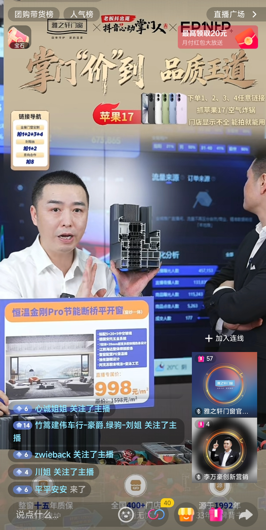 9月21日,雅之轩门窗以实战破局。总部新媒体团队全程操盘直播,不仅在线人数突破30万,更直接促成1021单成交,累计曝光超125万次。
