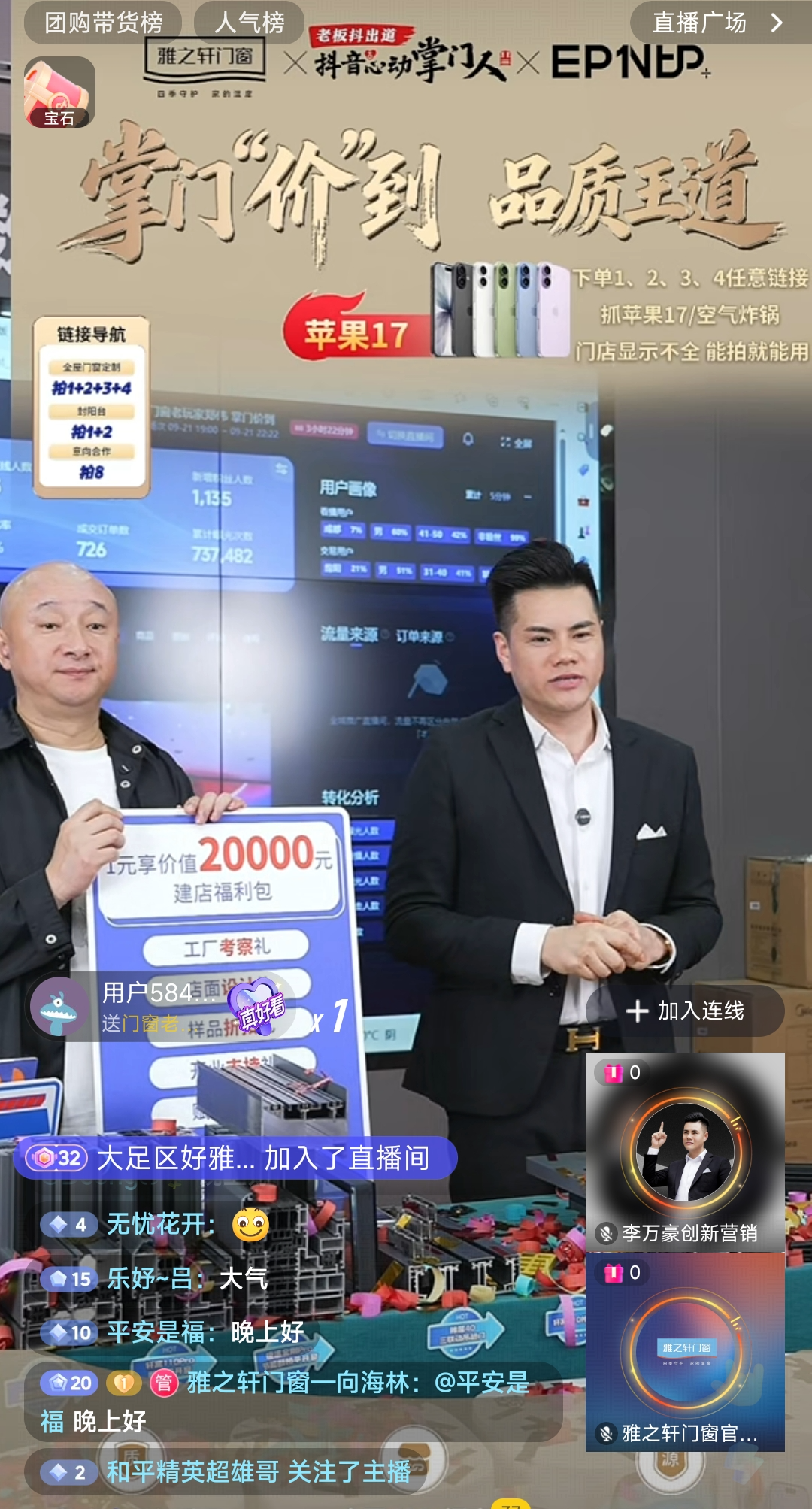 此次直播活动依托抖音平台开展,由雅之轩门窗总部全程操盘,品牌核心团队全力护航,更集结了两位在行业内各有深耕的关键人物——